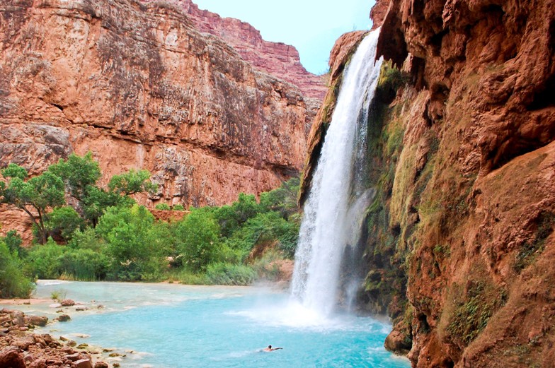 تقع شلالات هافاسو في محمية "هافاسوباي" الهندية-الأمريكية، وهي تنحدر فوق المنحدرات ذات اللونين البرتقالي والأحمر إلى أحواض سباحة زرقاء فيروزية زاهية، من ارتقاع يبلغ حوالي 37 متراً.