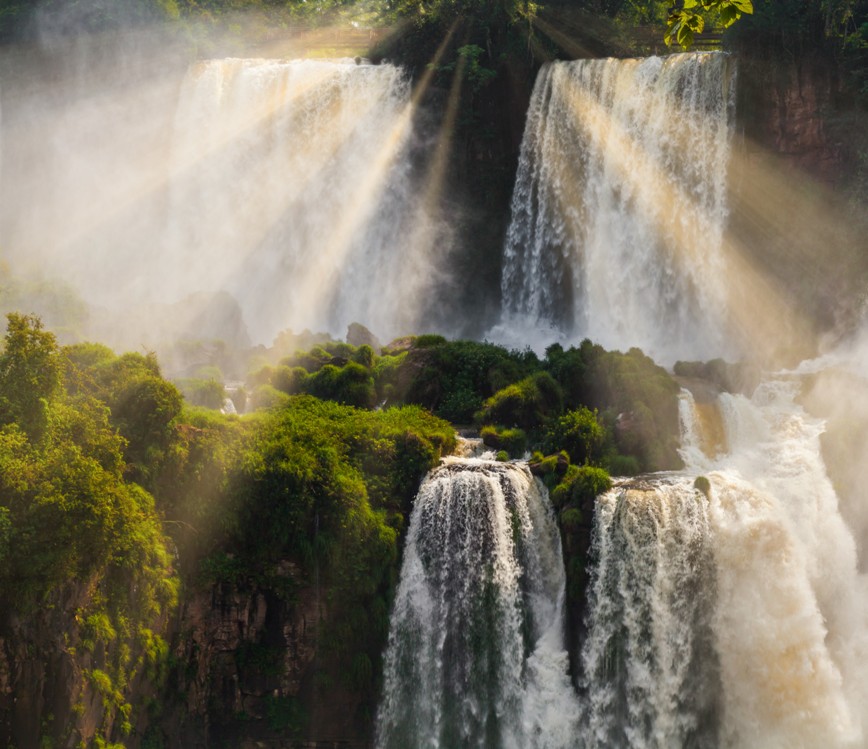 شلالات اجوازو هي شلالات نهر إجوازو الواقعة على الحدود بين الولاية البرازيلية بارانا والمحافظة الأرجنتينية مشينز، إحساس السائح من التأثيرات المرئية والصوتية للمياه المتساقطة على ارتفاع حوالي 82 متراً لا يشبه حقّاً أي إحساس آخر في العالم. والمناطق المحيطة بالغابات المطيرة جميلة بنفس القدر.