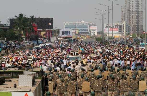 منذ أواخر نوفمبر (تشرين الثاني) 2020، أقام مئات الآلاف من المزارعين، معظمهم من البنجاب وهاريانا وغرب أوتار براديش، مخيمات في ضواحي دلهي؛ مما أدى إلى تعطيل الطرق الرئيسة المؤدية إلى العاصمة، رافضين عروض الحكومة بتعليق القوانين الجديدة مؤقتًا، ومصرين على مطالبهم بإلغائها.