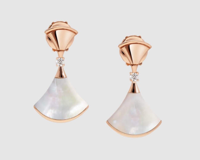 قدمت ماركة بولغري «Bvlgari» العديد من التصميمات الراقية والأنيقة لمجوهرات مُصممة من عرق اللؤلؤ، أعجبنا منها هذا التصميم الجذاب، لأقراط من الذهب مُرصَّعة بعرق اللؤلؤ.