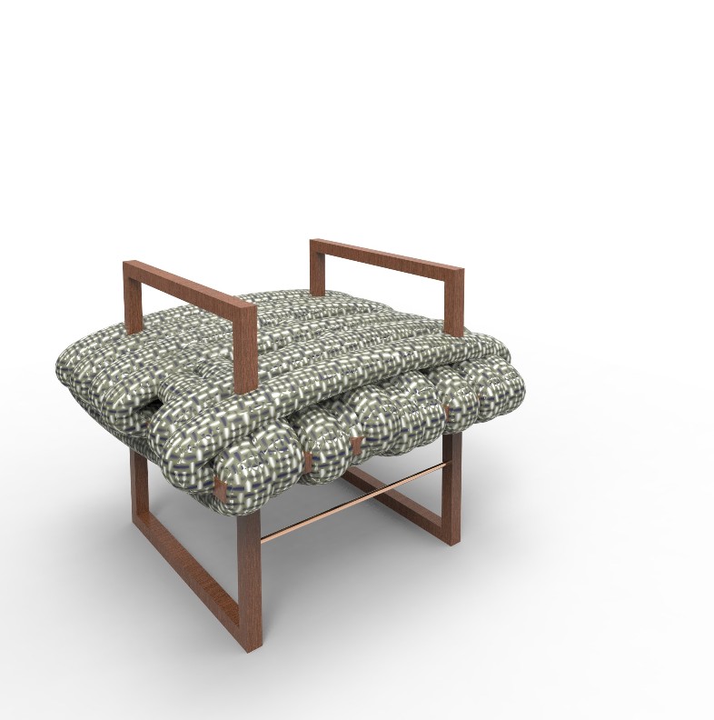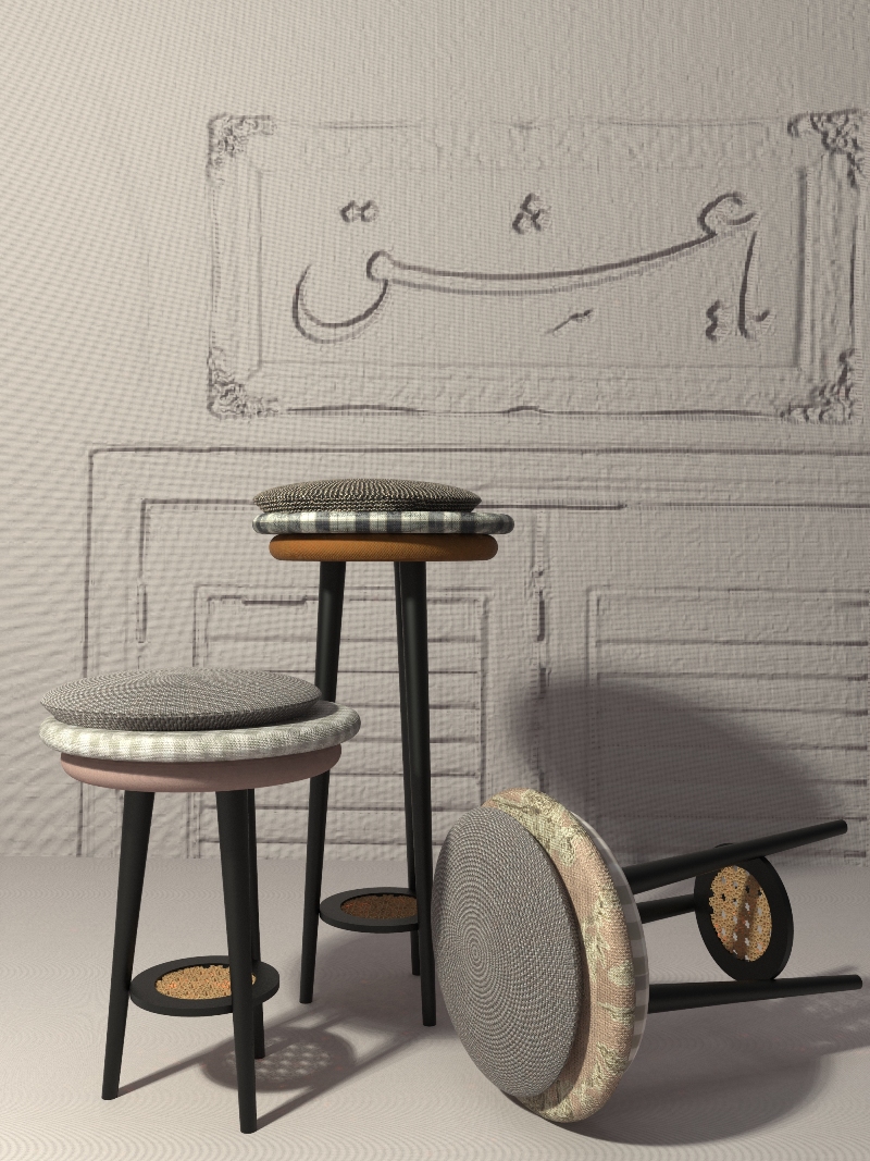 مقعدان غير مألوفين أعدّتهما المصمّمة دانا علاء الدين لجدّها ولجدّتها، أحدهما أقصر من الآخر. واستوحتهما من لباس جديها؛ ففي طبقة من جلسة المقعد الأول هناك نسيج مشابه للقبعة التي يرتديها الجدّ، وتحته طبقة ثانية مصنوعة من نسيج يحاكي قميص الجدّ، وتحته ثالثة مصنوع من النسيج الخاص بالسروال. ويتكرّر ذلك في الكرسي الأصغر الخاصّ بالجدّة. وفي التصميم، تبدو مادة الخيزران (الروطان)، مع الاشتغال على دمج الطراز «الفنتدج» بذلك الحديث. وعن هذا التصميم، تقول علاء الدين: «لا بدّ من أن تعبّر القطعة الفنية عن أمر ما».