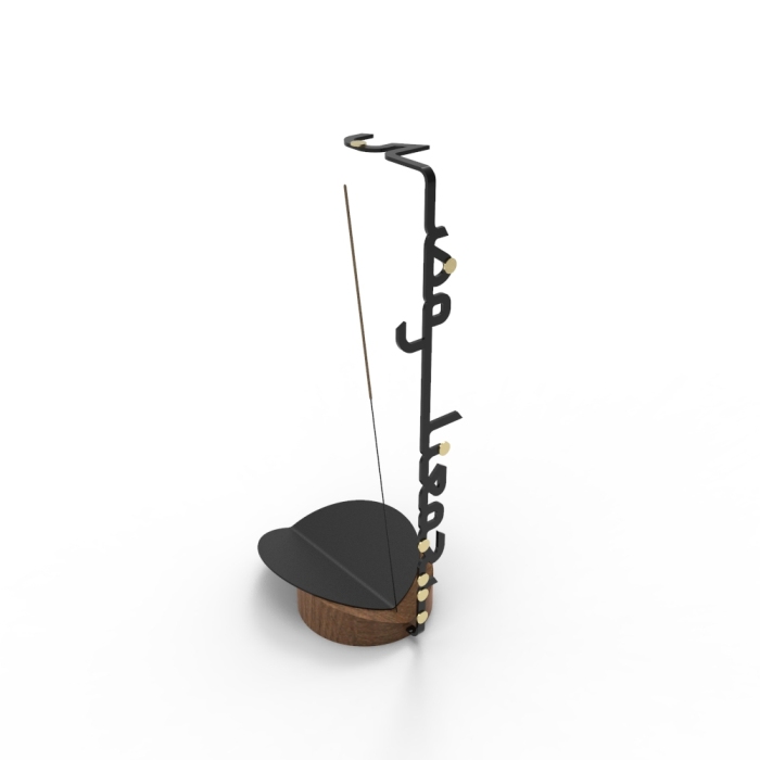 مبخرة تبرز تجريب المصمّمة في العمل على تطويع خامة الحديد، وإحنائها، بالإضافة إلى استخدام الخطّ العربي بطريقة مجدّدة