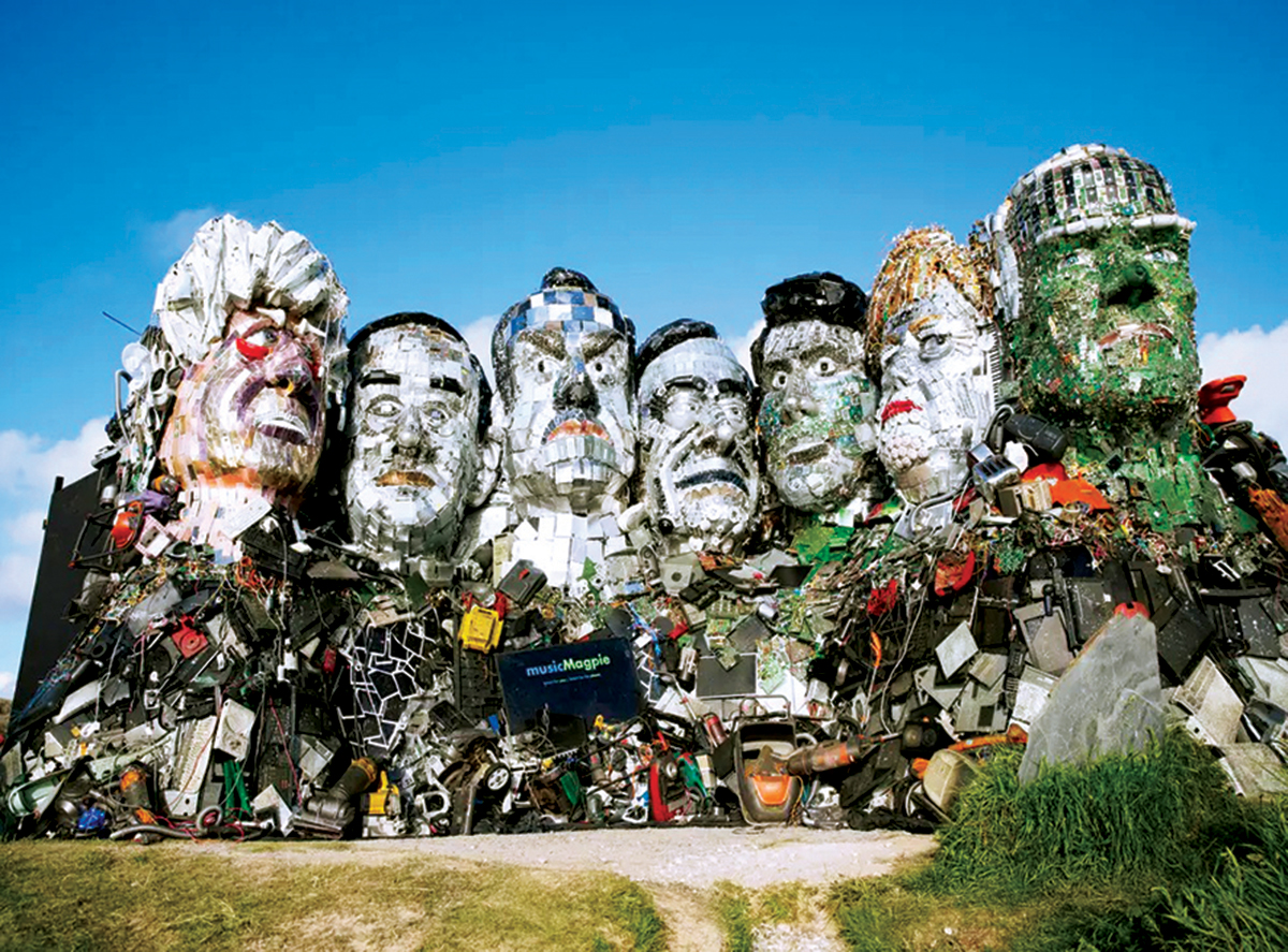 وتمت الإضاءة على مشكلة النفايات الالكترونية في العالم بمنحوتة هائلة تأخذ من أسلوب نصب "ماونت راشمور" لقادة العالم السبع من ابتكار الفنان، جو روش، الذي نصبها مقابل فندق خليج كاربيس، مطلقاً عليها تسمية "جبل من أجل المزيد من إعادة التدوير".
