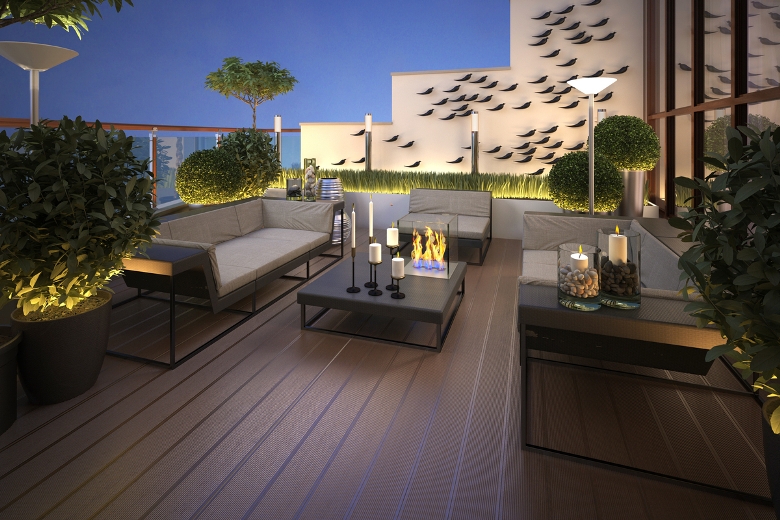 الإضاءة الأرضية تساعد في توسيع المساحة، وفي هذا الإطار يمكن وضع خط من "السبوتات" لتحديد المساحة، بخاصة مع توزيع النباتات حولها.