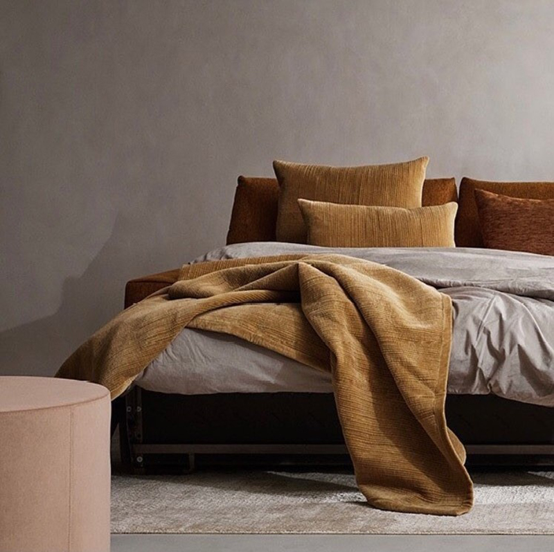 أمّا في غرفة النوم الرئيسة، فيدخل الخردلي إلى ظهر السرير، مع الابتعاد عن تكرار اللون في أي قطعة أخرى على السرير، سواء في مفرش السرير أو الوسائد، ويمكن إضافته في قماش الـ«بوف» في الغرفة، أو في الإكسسوارات، لا سيما «بلانكيت» على طرف السرير والوسائد، ولمسات بسيطة في الستارة.