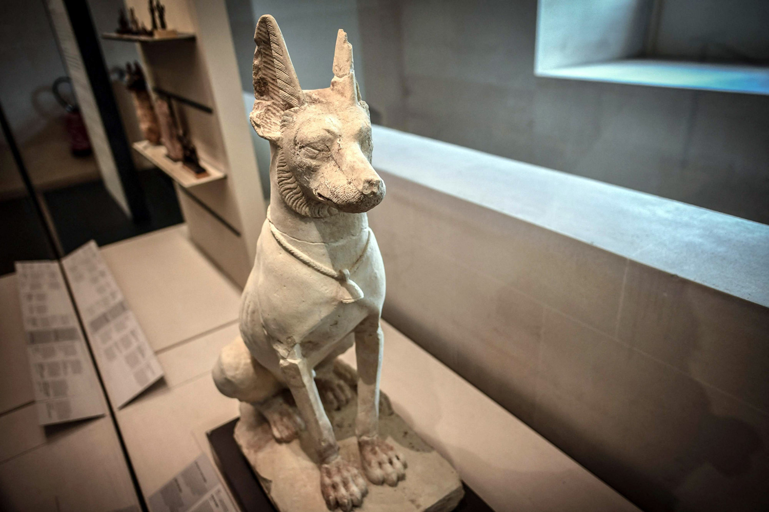 وفي قاعة الاستقبال، بات يقف تمثال كلب أسيوط المصنوع من الكلس والعائد على الأرجح إلى نهاية عصر الأسرة البطلمية (القرن الأول قبل الميلاد) بعدما خضع لأعمال ترميم طويلة.