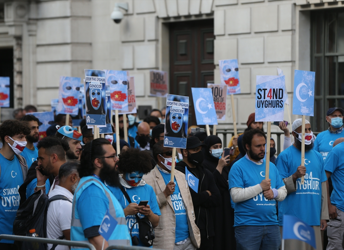 لندن-وكالات: شهدت العاصمة البريطانية لندن، الجمعة 2يوليو2021، مظاهرة ضد انتهاكات حقوق الإنسان في إقليم "شينغيانغ" ضد الأقلية المسلمة الإيغور.