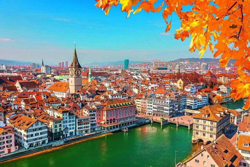 زيوريخ هي كبرى مدن سويسرا وأرقاها، بل ربما هي أرقى المدن الأوروبية. فيها مركز المال والأعمال كما يقولون، ففيها أشهر بنوك الأثرياء في العالم وكذلك صناعات الساعات والشوكولاتة وغيرها.