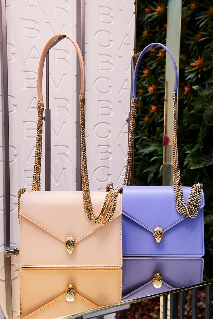 جاءت مجموعة دار بولغري Bulgari من الحقائب غنيّة بمختلف التصاميم التي تناسب كافة الأذواق والإطلالات. وكانت لافتة تصاميم الحقائب المرفقة بسلاسل معدنية والتي قدّمتها العلامة من الجلد الطبيعي، بألوان مرحة ومنعشة تلائم فصل الصيف، وبدرجات أخرى ميتاليكية تناسب السهرات والإطلالات المسائية.