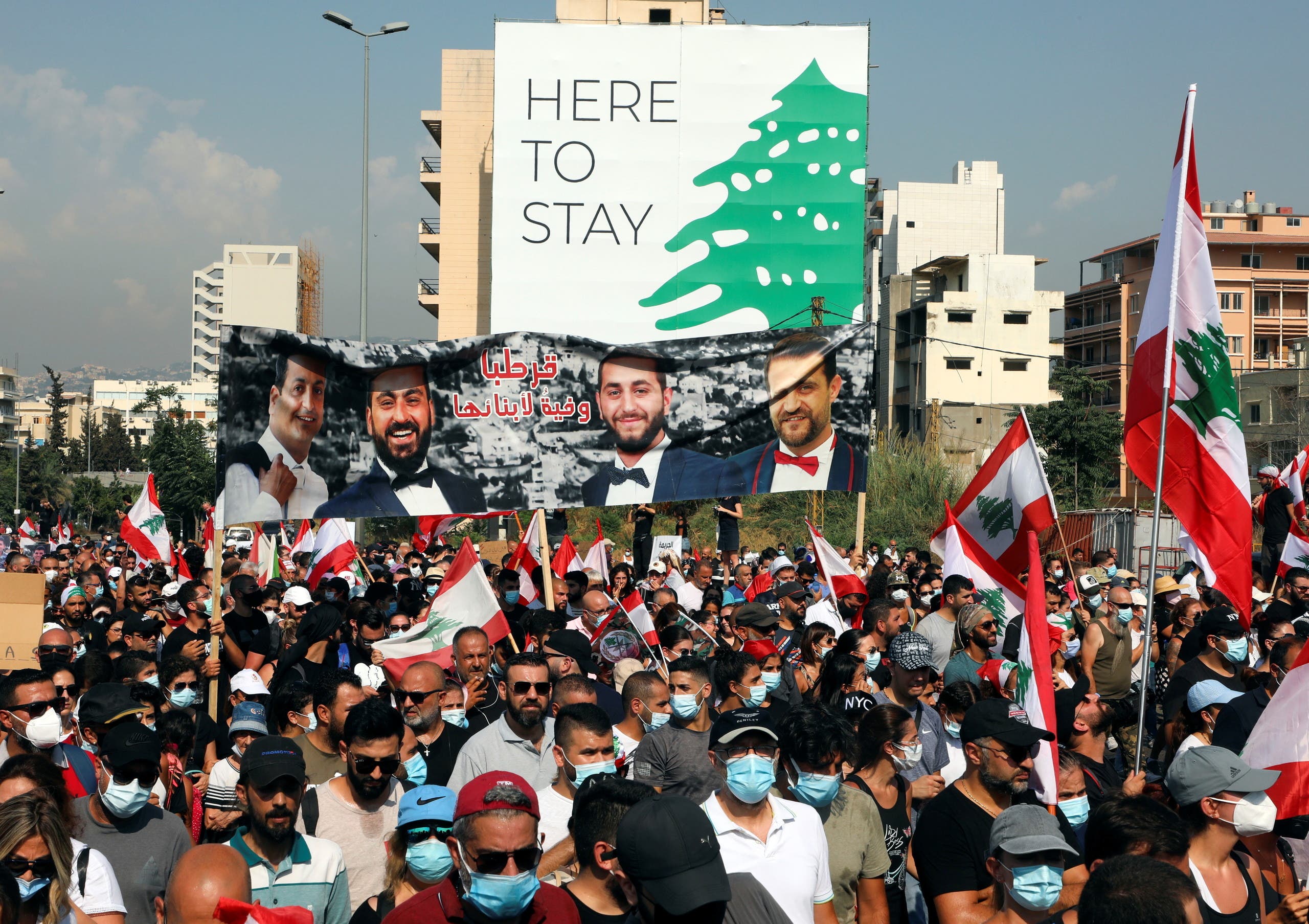 بيروت-وكالات: تشهد العاصمة اللبنانية بيروت، الأربعاء 4اغسطس2021، مسيرات حاشدة من مختلف مناطق لبنان باتجاه المرفأ في الذكرى الأولى لانفجار 4 أغسطس.