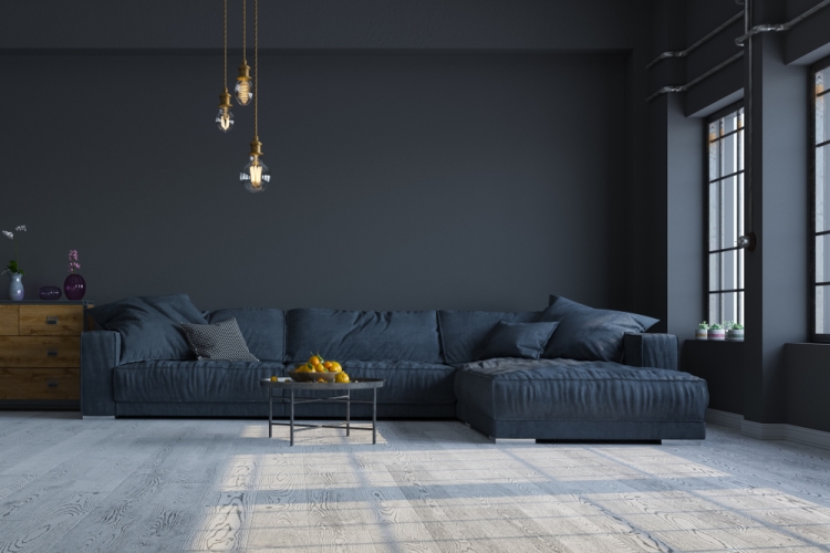 4-عندما يحلّ الرمادي الداكن (الفحمي) في غرف الجلوس، هو سيظهرها بمظهر درامي، واللون المذكور، صحبة الإضاءة المختارة بعناية، سيغني الديكور. أضف إلى الرمادي الفحمي المستخدم في طلاء الجدران، تجذب ألوان غير متوقعة كالخردلي، وأزرق الكوبالت.