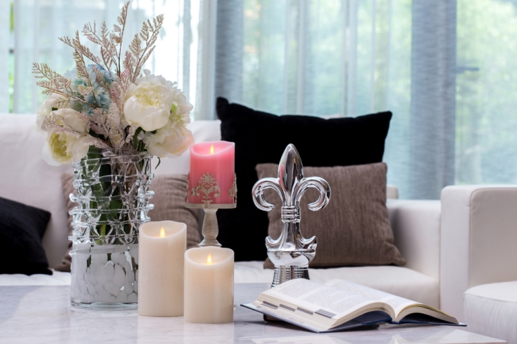 يوزّع كتاب من الفئة المذكورة، أو مجموعة ترتب من الكتاب الأكبر حجمًا على الطاولة يعلوه الأصغر فالأصغر... على أن لا يتجاوز عدد الكتب فوق بعضها البعص الأربعة، صحبة المزهريّة المليئة بالزهور. علمًا أنّه يلفت ترتيب أكثر من مجموعة منها على الطاولة الواحدة.