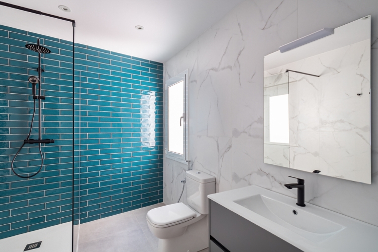 طريقة أخرى لتوظيف الألوان غير التقليديّة في ديكور الحمّام، هي استخدام البلاط الملون للفت الانتباه، لا سيّما إلى منطقة الـ"دشّ".