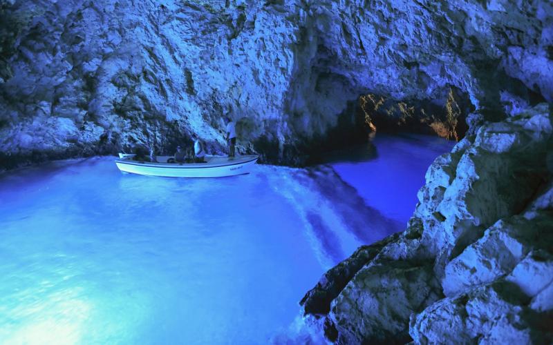 يمتاز الكهف الأزرق بقوس بطول 30 مترًا. يجذب الموقع أكثر من 100000 زائر سنويًا مما يوحي بأنه مكان يستحق الزيارة. يقوم البحارة ذوو الخبرة بنقل الزوار إلى الكهوف حيث تعكس المياه المؤدية إلى ظلال مختلفة من اللون الأخضر السماوي والزمرد. إنها بالتأكيد فرصة لالتقاط الصور لا ينبغي تفويتها. تتم الرحلات على مدار السنة، إذا سمح الطقس بذلك.