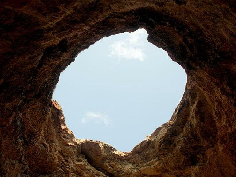 يصل الضوء إلى داخل الكهف من فتحة كبيرة في سقفه بارتفاع 20 مترا فوق السياح تعرف باسم "العين"