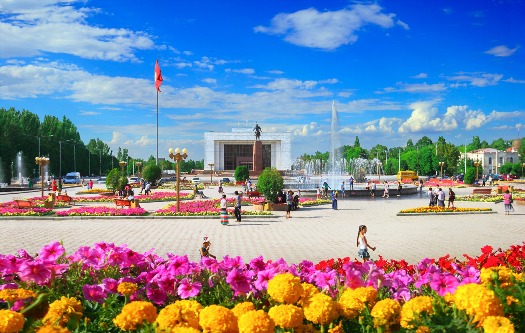 عاصمة قيرغيزستان هي بيشكيك، وهي مدينة حديثة جذابة ذات طرق واسعة، تقع على خلفية الجبال المغطاة بالثلوج مع وفرة من المساحات الخضراء. في عام 1825 أنشأ خان قوقند حصناً من الطين يسمى بيشبيك. بعد الثورة الروسية، تم تغيير اسم المدينة إلى فرونزي على اسم الجنرال البلشفي الشهير الذي ولد هنا. عادت إلى اسمها الأصلي بيشكيك في عام 1991 بعد استقلال قيرغيزستان.