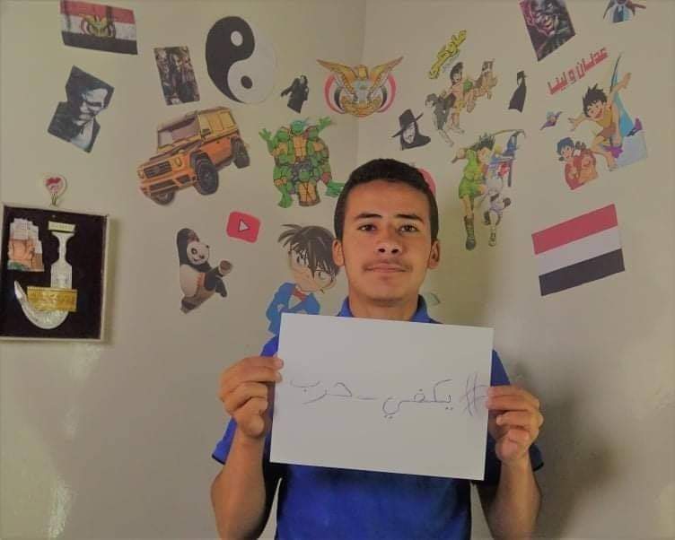 "يكفي حرب"، هو لسان حال 30 مليون إنسان يمني، يتربص بهم الموت من جميع الجهات، ويحاصرهم ثالوث الفقر والجوع والمرض، لا يعرفون طعم الأمان ويبحثون عن السلام في أجندة كل مبعوث أممي جديد، 3 رؤساء قتلى وحروب أهلية دامية، وأطفال مجندون تلتهمهم محارق الجبهات كل يوم، مآتم وعزاءات وجرحى متروكين في الصحارى والجبال، وبعضهم يعودون محمولين إلى أهاليهم بأعضاء ناقصة، وقوافل من النازحين يهربون من صوت النيران إلى أماكن نائية، أيتام ومفقودين بالجملة وعدّاد القتلى في تصاعد مستمر، ليس ثمة حل وفق ناشطون سوى نشر هاشتاغات تخاطب وجدان صناع القرار، وتهز ضمير الإنسانية.