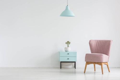 في غرفة الجلوس التي تتمتّع بحضور تشطيبات من مواد طبيعية، كالخشب، مثل: الأرضيّة أو الطاولات والإكسسوارات (السلال، مثلًا)، والسجاد المشغول من ألياف السيزال، يجذب اللون المذكور الذي يحل في طلاء الجدران أو ورق الجدران، أو في زوجين من المقاعد الجانبيّة أو في الوسائد المرمية على الأريكة أو على المقعد الجانبي المعدّ من الروطان...