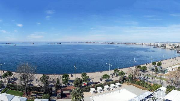 تمثل هذه الواجهة البحرية الكبيرة للمشاة في المنطقة الحضرية الشرقية أحد أفضل المشاريع العامة في اليونان خلال العشرين سنة الماضية. على الرغم من ضيق مساحته في العمق إلا أنه طويل جداً، حيث يمتد لحوالي 3،5 كيلومتر من البرج الأبيض إلى Megaro Mousikis ويوفر مساحة كبيرة بين البحر والمدينة. لقد أصبح أحد أكثر المواقع شهرة للتنزه في جميع أنحاء المدينة. يوفر الكورنيش أيضاً خدمة تأجير الدراجات والقوارب على طول جوانبه، فضلاً عن عدد من المطاعم اللذيذة.