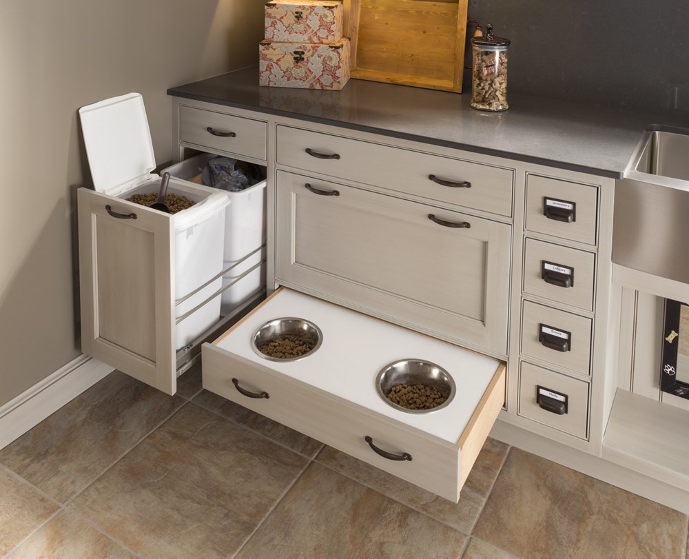 من الصيحات اللافتة، أيضاً، تخصيص مكان في المطبخ لإطعام الحيوانات الأليفة، وتخزين أطعمتها.