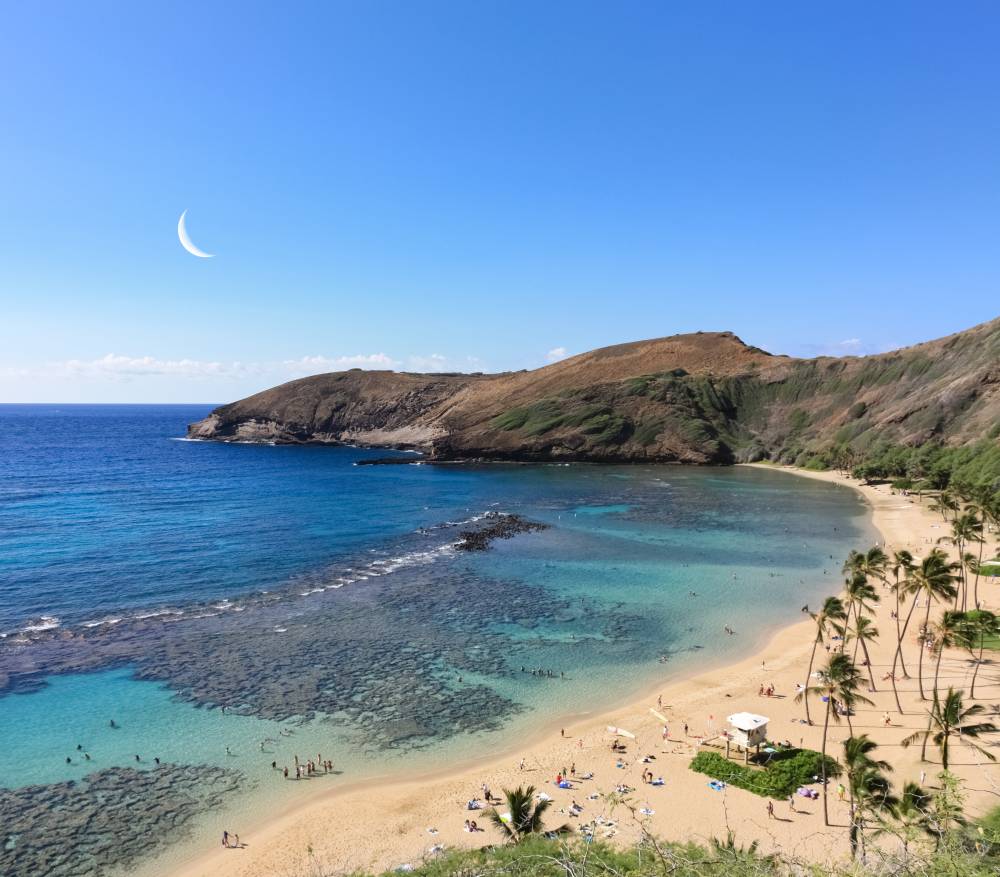 خليج هانوما هو خليج طبيعي فريد يتكون داخل فوهة بركان قديم. في الماضي، كان عبارة عن وجهة غطس شهيرة لدرجة أنها أصبحت ملوثة وتضررت من الإفراط في الاستخدام. بفضل جهود الاستعادة التي بدأت في عام 1990، أصبح الخليج اليوم نقيًا، ويزدهر نظامه البيئي، مما يسمح للزوار بالاستمتاع حقًا بالشعاب المرجانية والعديد من سكانها.