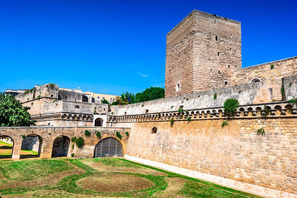 على الجانب الغربي من البلدة القديمة توجد قلعة كاستيلو، التي كانت في الأصل عبارة عن مبنى بيزنطي روماني، أعاد بناءها فريدريك الثاني في عام 1233 بأسلوب نورمان-شفابان. حولته Bona Sforza إلى قصر في القرن السادس عشر، مضيفًا الحصون وأبراج الزاوية فوق الخندق. في وقت لاحق، تم استخدامه كسجن ومحطة إشارة. لا يزال هناك برجان من هيكل نورمان. يضم المبنى الآن متحفًا مثيرًا للاهتمام به نسخ من منحوتات Apulian-Norman ومعارض فنية مؤقتة.