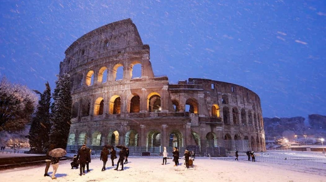 يعتبر صرح الكولوسيوم، الموجود بإيطاليا والذي يرجع تاريخه للعصر الروماني، وجهة سياحية تجذب الملايين صيفاً وشتاءً. وكان صرح الكولوسيوم مكاناً تقام فيه المعارك بين المصارعين والمناظرات العامة، ويصبح هذا الصرح أكثر سحراً وجمالاً في فصل الشتاء، عندما تتساقط عليه الثلوج وتغطيه.