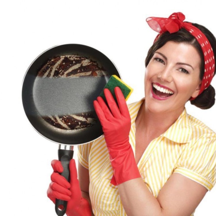في البداية، نحتاج لتنظيف المقلاة من الزيت والدهون المحروقة إلى:
