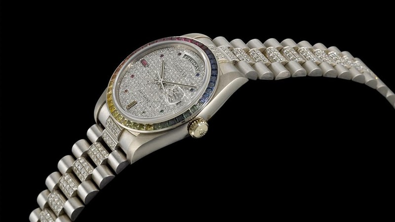 الساعة تعد بمنزلة شهادة حقيقية على براعة علامة رولكس التجارية السويسرية الفاخرة التي طالما ارتبطت بالأثرياء والمشاهير، في ترصيع الأحجار الكريمة.