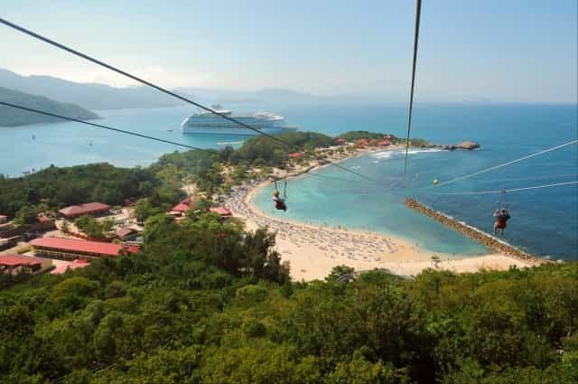 هايتييمكن تجربة أحد أطول خطوط الانزلاق فوق الماء في العالم في منطقة البحر الكاريبي، في جزيرة لابادي في هايتي.