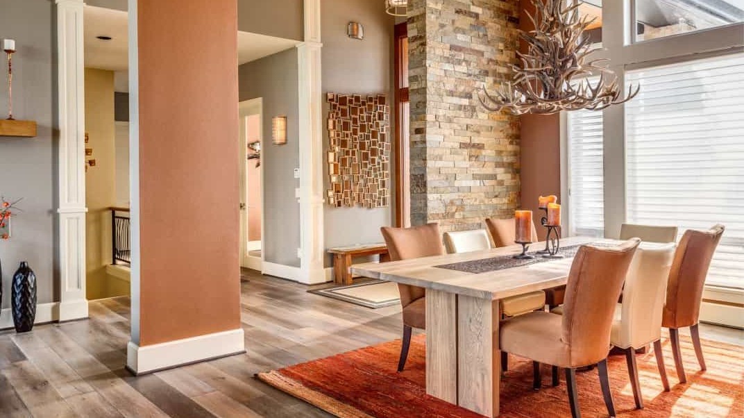حافظ على غرفة الطعام نظيفة مع الحد الأدنى من الفوضى واستخدم نظام ألوان مريح يضمن جواً مناسباً، وكما نعلم فإن الألوان والمواد الترابية هي الخيارات المثالية لذلك.