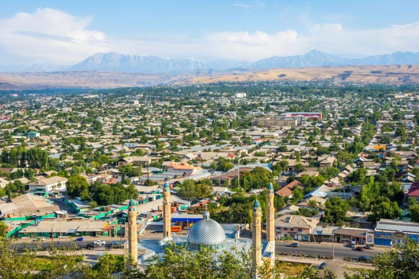 يُعد سوق جايما بازار اليومي الضخم أحد أفضل الأسواق في آسيا الوسطى، وهو منتشر على طول النهر ويكون في أكثر حالاته ازدحامًا يوم الأحد. يوجد خارج المدينة نتوء صخري معروف باسم عرش سليمان.