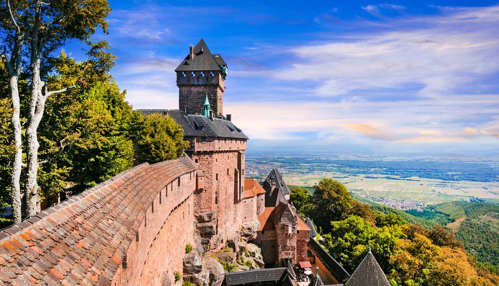 يقع شاتو دو أوت كونيغسبورغ في موقع استراتيجي على تل مرتفع يطل على سهل الألزاسي في جبال فوج بفرنسا. تم استخدامه من قبل القوى المتعاقبة من العصور الوسطى حتى حرب الثلاثين عامًا عندما تم حرق القلعة ونهبها من قبل القوات السويدية بعد حصار دام 52 يومًا. بعد ذلك، تم ترك الحصن غير مستخدم لبضع مئات من السنين وأصبح غارقًا في الغابة. في عام 1899 تم تسليمه إلى الإمبراطور الألماني فيلهلم الثاني وأعيد بناؤه كما كان في حرب الثلاثين عامًا. تستقطب القلعة اليوم أكثر من 500000 زائر سنويًا.