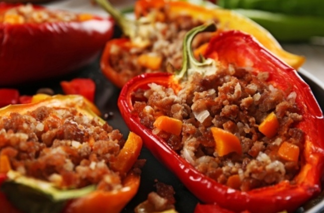 اغسلي الفلفل الأحمر جيداً وجففيه ثم قطعيه إلى نصفين متساويين.