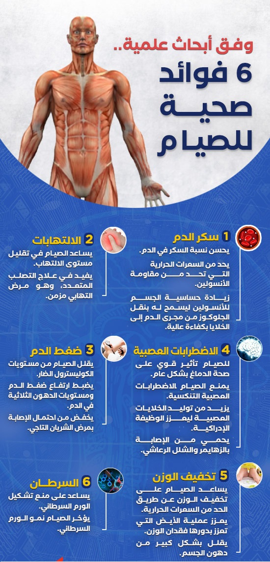 وأشاروا إلى أن الصيام يساعد على ضبط النفس والتقليل من العادات السيئة، وكذلك هناك فوائد إيجابية من الناحية الصحية، إذ أكد الدكتور وجدي البونجي أخصائي أمراض باطنية في مستشفى مركز كليمنصو الطبي بدبي أن الدراسات الطبية الحديثة أثبتت أن للصّوم فوائد صحية عديدة؛ فهو يقلل الالتهابات المزمنة، ويزيد مضادات الأكسدة ويحسّن صحة «ميكرو بيوم» الأمعاء ما يساعد على تأخير شيخوخة الجسد وينظّم عمل الأنسولين وبالتالي معدلات السكر في الدم.