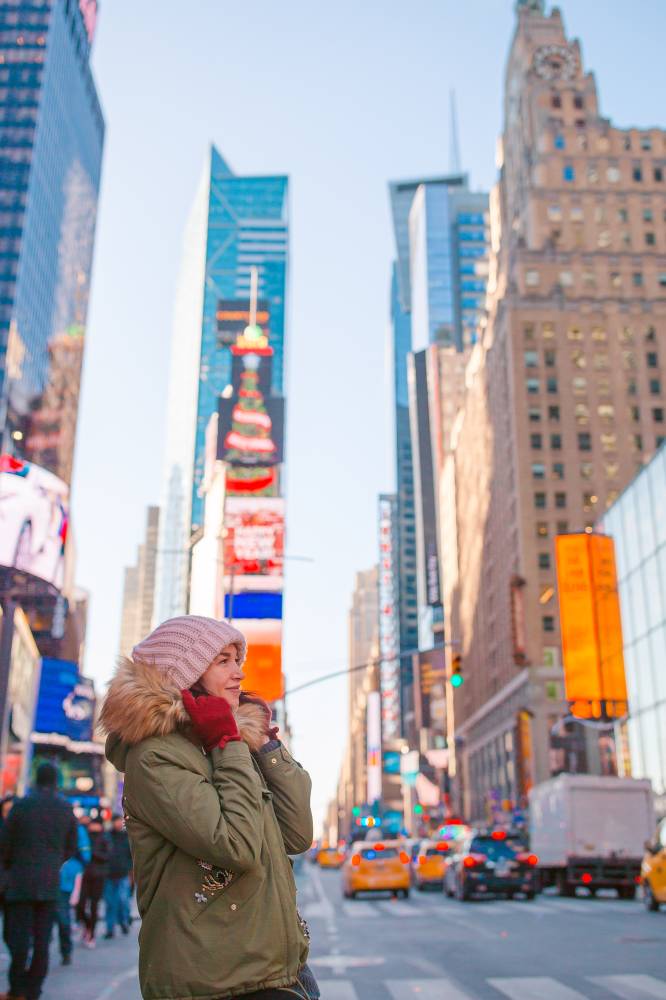 تقع شاحة تايمز سكوير في نيويورك عند تقاطع شارع برودواي وسيفينث أفينيو وتمتد من شارع 42 غربًا إلى شارع 47 غربًا. إنها مكان مليء بشاشات الفيديو ولافتات LED والأضواء الساطعة؛ تعتبر ساحة تايمز سكوير "الجديدة" من أهم معالم الجذب السياحي، وهي متنزه ترفيهي مناسب للعائلات يضم مطاعم ومسارح وفنادق ذات طابع خاص، بالإضافة إلى منطقة أعمال متطورة. يمكن مشاهدة الأضواء واللافتات في أي وقت، ولكن أكثر التجارب جاذبية تأتي عندما يزور المرء تايمز سكوير ليلاً، حيث تشتعل جميع اللافتات والشاشات بالألوان.
