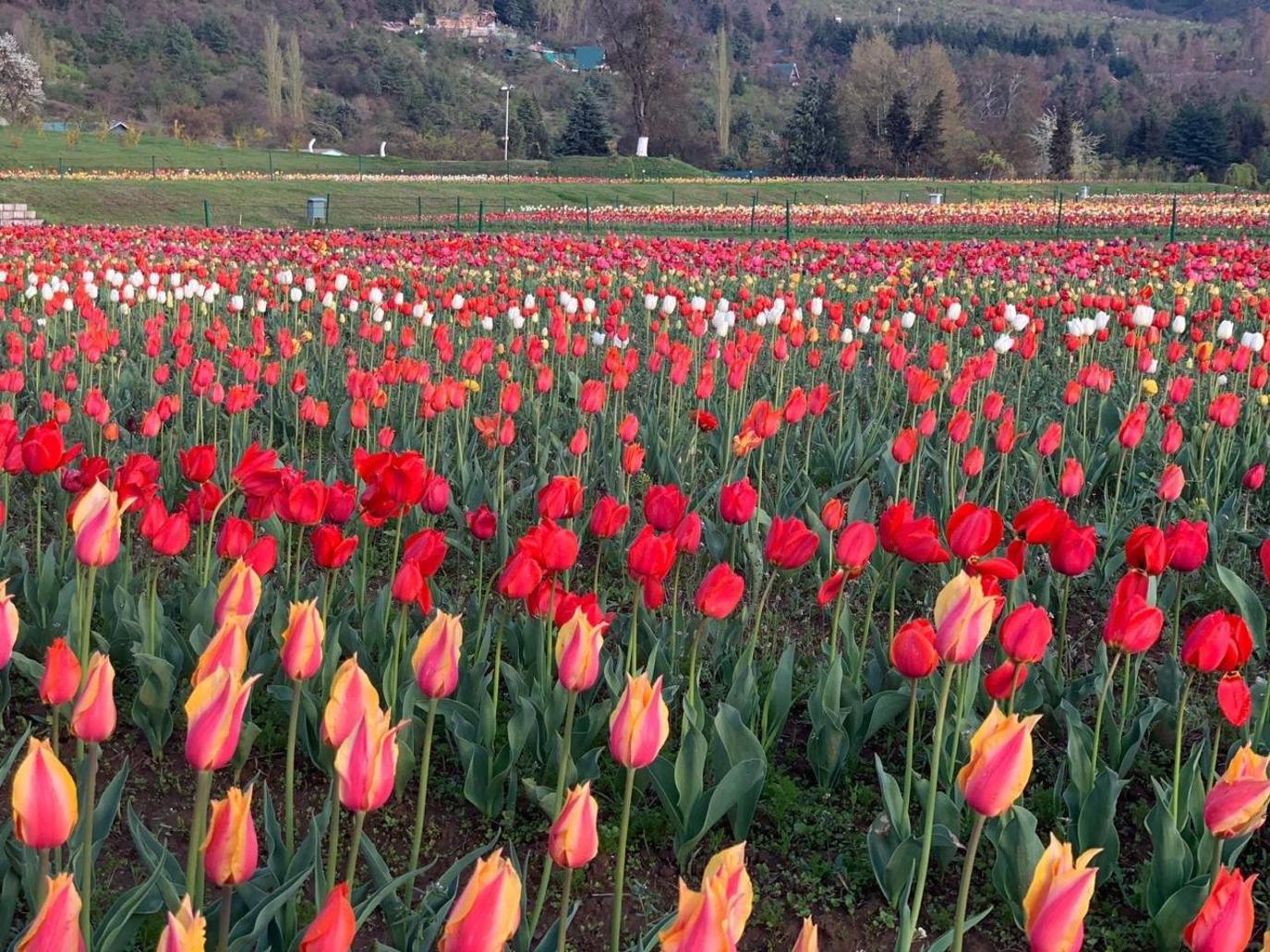 تعد زهرة التيوليب جزءا أصيلا من منطقة وسط آسيا؛ حيث انتشرت هذه الزهرة في الصين ومنغوليا ومن ثم إلى كشمير، حسب موقع newsbytesapp.com، ففي أول يوم افتتاح الحديقة ، والذي اعتُبر مهرجاناً لزهور التوليب والذي جاء تحت عنوان "ربيع كشمير" زار أكثر من 30 ألف شخص هذه الحديقة الضخمة. تم إنبات 1.5 مليون فرع زهرة التوليب في الحديقة المنتشرة على مساحة 30 هكتاراً، وقد تم تصميم فكرة الحديقة ، التي تمتد في سفوح سلسلة جبال زابروان المكسوة بالثلوج ، لدفع موسم السياحة في الوادي لمدة شهرين. حيث أكد المسئول عن الحديقة إن قسم زراعة الزهور زرع ما يقرب من 15 بصلة من أصناف مختلفة هذا العام. وأضاف أن "الحديقة حققت حتى الآن ازدهارًا بنحو 25 بالمائة".