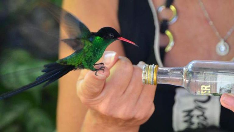 ومع ذلك لا يتمكن السياح من مشاهدة أجمل المناظر في البداية؛ وهي عبارة عن الطيور الطنانة، التي تطير بحرية، وتجعل السياح يعايشون تجربة لا تُنسى عندما يتم إطعامها بأيديهم، ويسمح فريتز مدير المحمية الصغيرة للسياح بالجلوس في الشرفة ويعطيهم زجاجة مياه محلاة بالسكر.