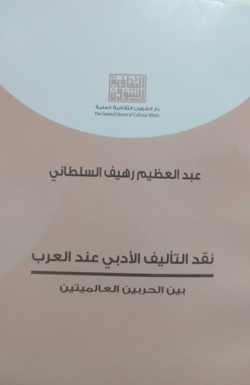 صدر حديثاً عن "دار الشؤون الثقافية العامة" في بغداد كتاب "نقد التأليف الأدبي عند العرب بين الحربين العالميتين" لأستاذ النقد الحديث والباحث العراقي عبد العظيم رهيف السلطاني، الذي يضيء واقع المدونة النقدية العربية في النصف الأول من القرن العشرين التي اهتمّت ببحث كتب أدبية ودراسات نقدية وليس نصوصاً إبداعية.