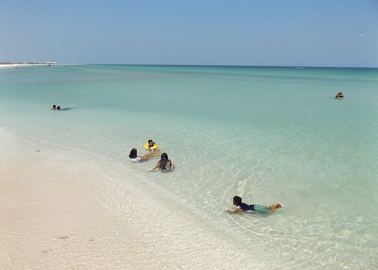 يشتهر الشاطئ بالجمال الطبيعي مع مناطق الرمال المُغطاة بالقواقع، يقع الشاطئ على خليج المكسيك على بُعد 105 كم غرب مدينة ميريدا.