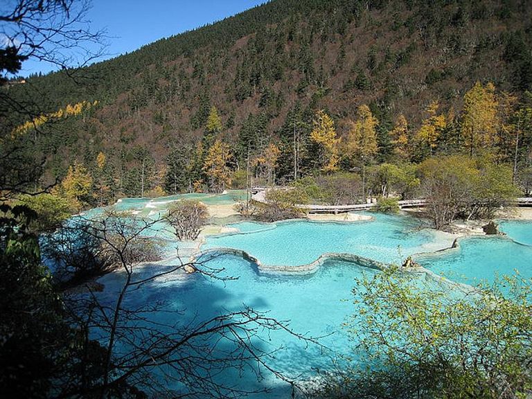 تضم هذه الحديقة الوطنية سلسلة من حمامات السباحة المُلونة والبحيرات المتكلسة المخبأة بين الوديان الجبلية والغابات الكثيفة، لذا فهي واحدة من أجمل الحدائق في الصين، وما يضاف أيضًا إلى جمال الحديقة أن المسابح نفسها مغطاة بألوان الفيروز والأزرق الداكن والأصفر الزاهي.