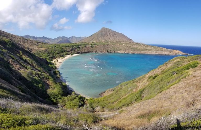 تم تشكيل خليج "Hanauma" داخل فوهة بركان في جزيرة أواهو وهو خليج محمي فريد من نوعه حيث أنه مليئة بالشعاب المرجانية مما جعله واحدًا من أفضل أماكن السياحة في هاواي.
