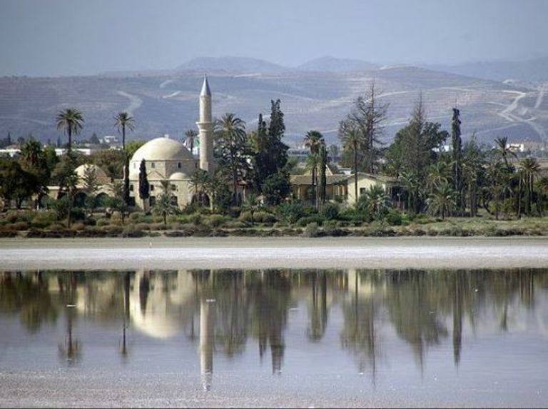 تقع "Hala Sultan Tekke" الجميلة والهادئة على الجانب الغربي من بحيرة "Larnaca Salt Lake" على بُعد ثلاثة كيلو مترات من غرب وسط المدينة.