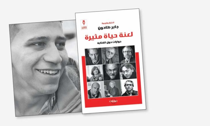 في «لعنة حياة مثيرة» ترجم جابر طاحون ثلاثة عشر حوارا مع كتاب كبار حصل بعضهم على جائزة نوبل، وبعضهم نال جوائز أدبية رفيعة المستوى، ومن خلال هذه الحوارات نعرف كيف يرى هؤلاء الكتابة، وما الذي تمثله لهم في حياتهم، وما هي طقوسهم التي يمارسونها أثناء الكتابة. كما نعرف آراءهم ووجهات نظرهم في عدة قضايا إبداعية، سواء على مستوى الإبداع أو على مستوى الترجمة. كذلك تسمح لنا هذه الحوارات بالاقتراب أكثر من هؤلاء، ومعرفة بعض التفاصيل الخاصة بحيواتهم التي يعيشونها ممتزجة مرة بالواقع المحيط بهم، ومرة منفصلة عنه متحولة إلى حياة العزلة.