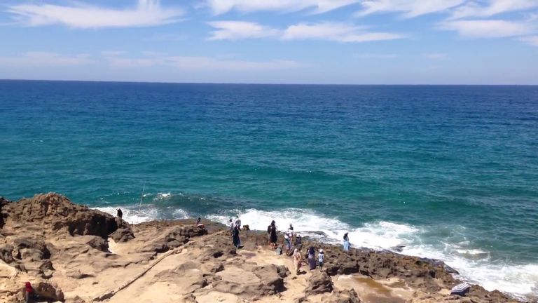 غروب الشمس هو الوقت المثالي لالتقاط أجمل الصور التذكارية في هذا الشاطئ عندما تتوهج الصخور الخشنة باللون البرتقالي في الضوء الباهت.