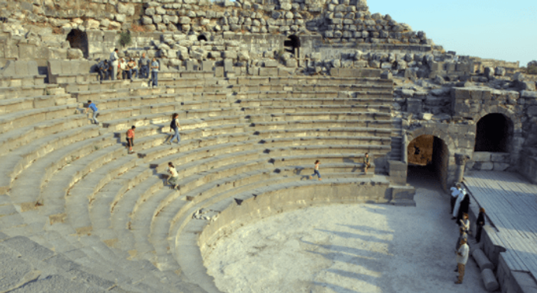 يتسع مدرج المسرح الغربي إلى ثلاثة آلاف شخص وسط ساحة مستديرة مصممة بشكل روماني تقليدي وفقًا للمسارح الرومانية القديمة المكشوفة مع روعة في الفن والعمارة، ويضم المسرح مجموعة من التماثيل المصنوعة من الرخام الأبيض.