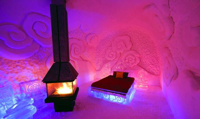 يُمكنك في هذا الفندق ارتداء قفازات والاستمتاع بكوب من عصير التفاح وقضاء ساعة في المنتجعات الصحية والساونا الخارجية، وبعد ذلك التوجه إلى غرفتك حيث الجدران الجليدية والسقف الجليدي حتى أيضًا السرير مصنوع من الجليد، ويمكن البقاء في هذا العمل الفني من أول شهر يناير/ كانون الثاني وحتى شهر مارس/ آذار.
