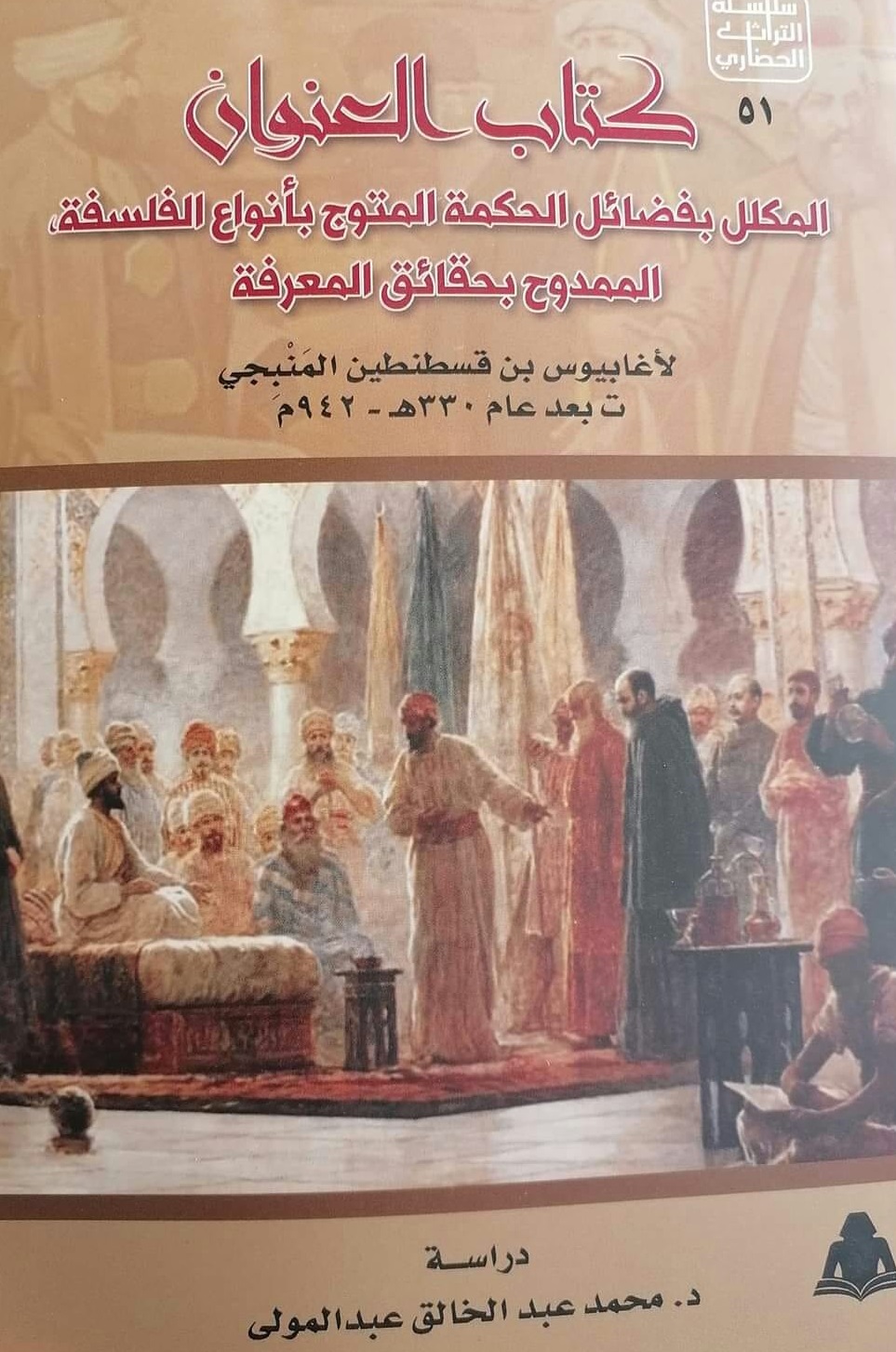 من بين هذه المؤلَّفات، يبرز مصنَّفٌ فريد "كتاب العنوان: المُكلَّل بفضائل الحكمة المتوَّج بأنواع الفلسفة، الممدوح بحقائق المعرفة"، الذي وضعه المؤرِّخ أغابيوس بن قسطنطين المنبجي (ت: 330هـ/ 942م)، وصدر حديثاً بتحقيق الباحث محمد عبد الخالق عبد المولى، ضمن سلسلة "التراث الحضري" في "الهيئة العامّة المصرية للكتاب".