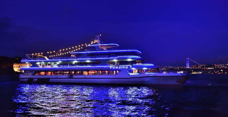 هي تجربة فريدة من نوعها حيث يمكنك القيام برحلة بحرية وعشاء في البوسفور مع مشاهدة عروض الرقص التقليدي على الإيقاع الموسيقي بجانب سحر الأضواء الساطعة الرائعة لمضيق البوسفور وهي واحدة من أفضل الرحلات البحرية في تركيا.