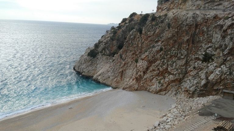 شاطئ كابوتاس هو الصورة المثالية لساحل الفيروز وزيارة أساسية في كأس يبلغ طول الشاطئ حوالي 165 مترًا فقط ويعتبره الكثيرون أفضل شاطئ في تركيا.